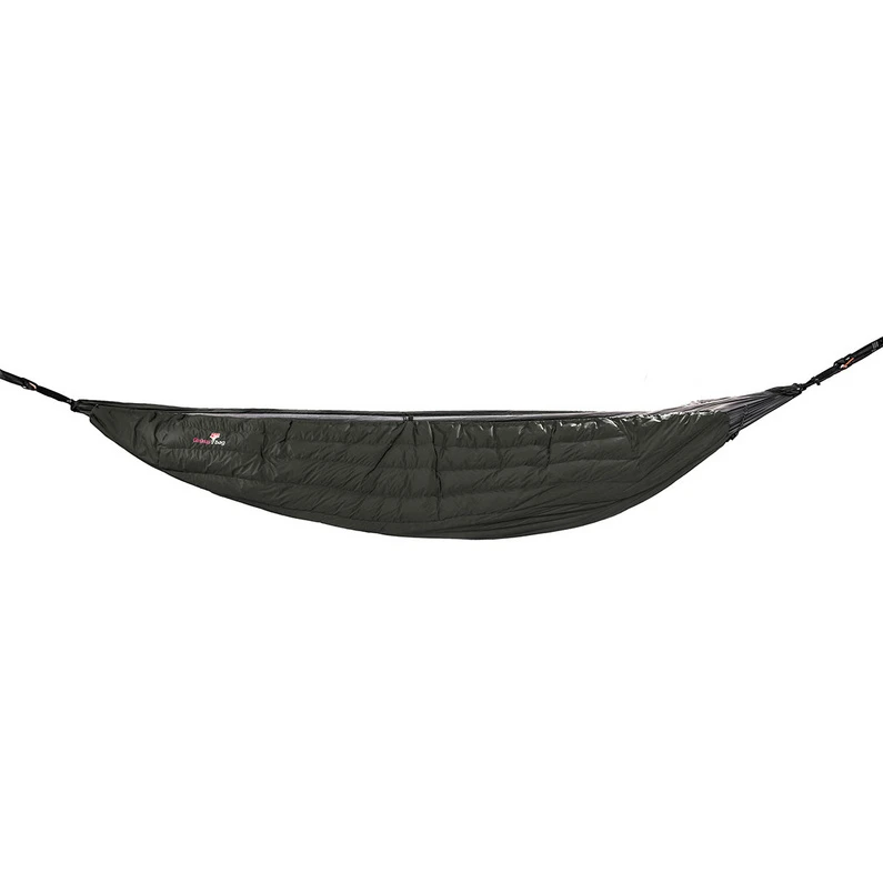 Ademende, waterafstotende onderlaag voor de hangmat, gevuld met de temperatuur balancerende DownWool isolatie