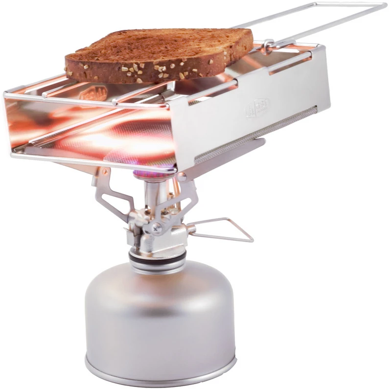 Deze vouwbare toaster past op de campingbrander en zorgt voor een beetje luxe op de tocht