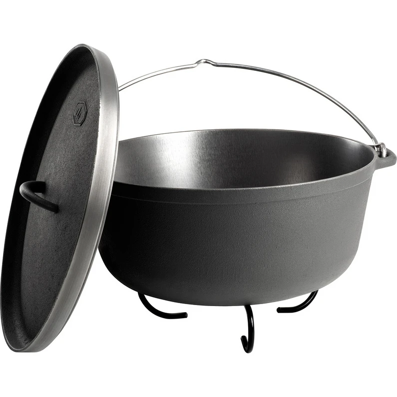 Relatief lichte braadpan van corrosievrij gietijzer voor heerlijke buitenmaaltijden