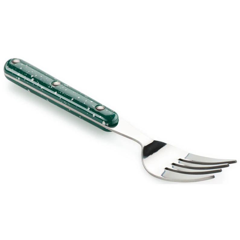 Vork van edelstaal met geëmailleerde greep
