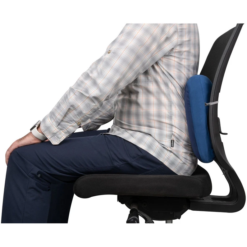 Opblaasbaar reiskussen ter ondersteuning van de lendenwervels bij langdurig zitten