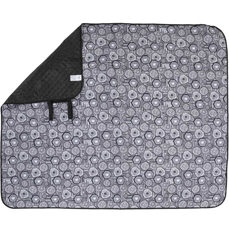 Picknickdeken met een vrolijk motief en vochtbestendige onderkant voor milde dagen in het park